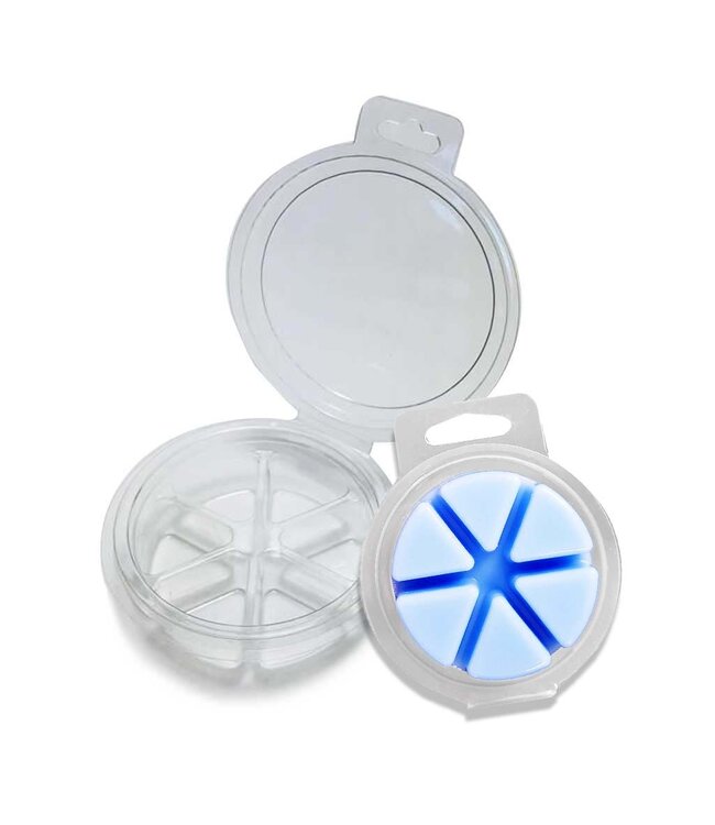 Clamshell voor waxmelts met een 6 segmenten (Deli Pot). Doorzichtige plastic vorm voor geurmelts in de vorm van 6 handige segmenten. Giet de wax rechtstreeks in de clamshell voor een instant verpakking!